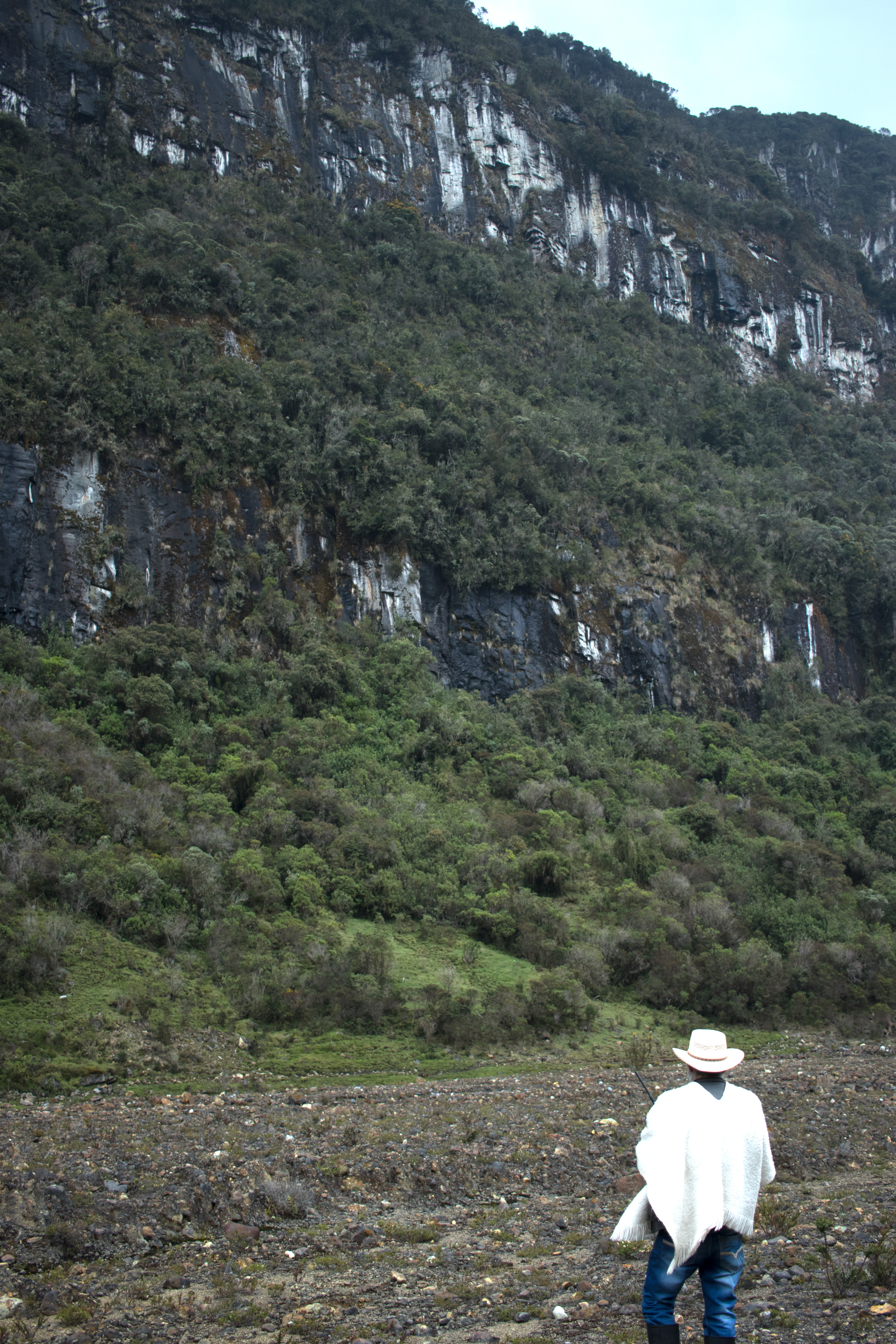 Sus recorridos de más de cuatro horas desde su casa, ubicada en la falda del volcán, hasta el inicio del hielo, son acompañados por un frío incesante, que a veces alcanza los grados bajo cero, un sendero verde opacado por la ceniza -pues en las flores y el pasto hay más tonos grises que verdes o coloridos- y, el cauce del río lagunilla que se puede oler a varios metros; ¡sí! este río huele.