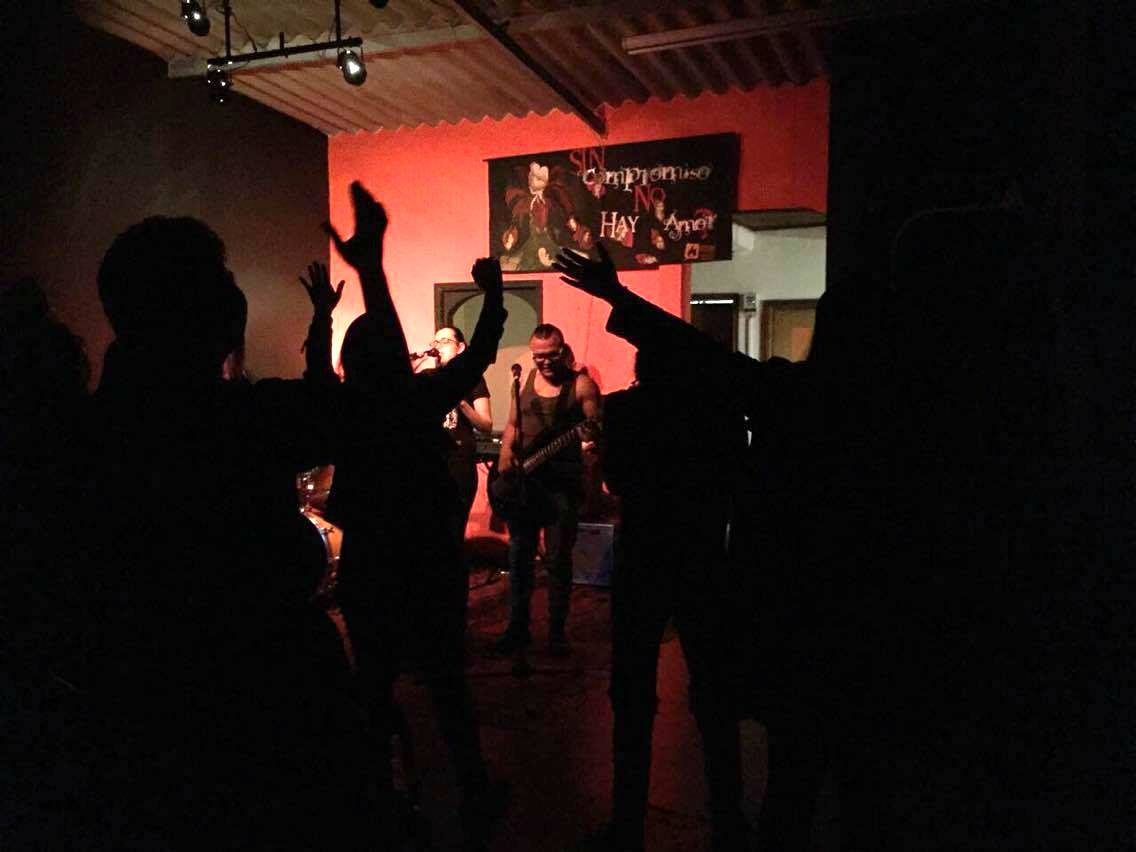 No es muy grande. Dos paredes negras, dos rojas. El piso en baldosín rojo y descuidado. Cada sábado, alrededor de cuarenta personas con pantalones de cuero, accesorios con taches y botas de punta de acero, se reúnen en Pantokrator, una iglesia cristiana que adora con alabanzas a ritmo de rock y heavy metal en Bogotá.