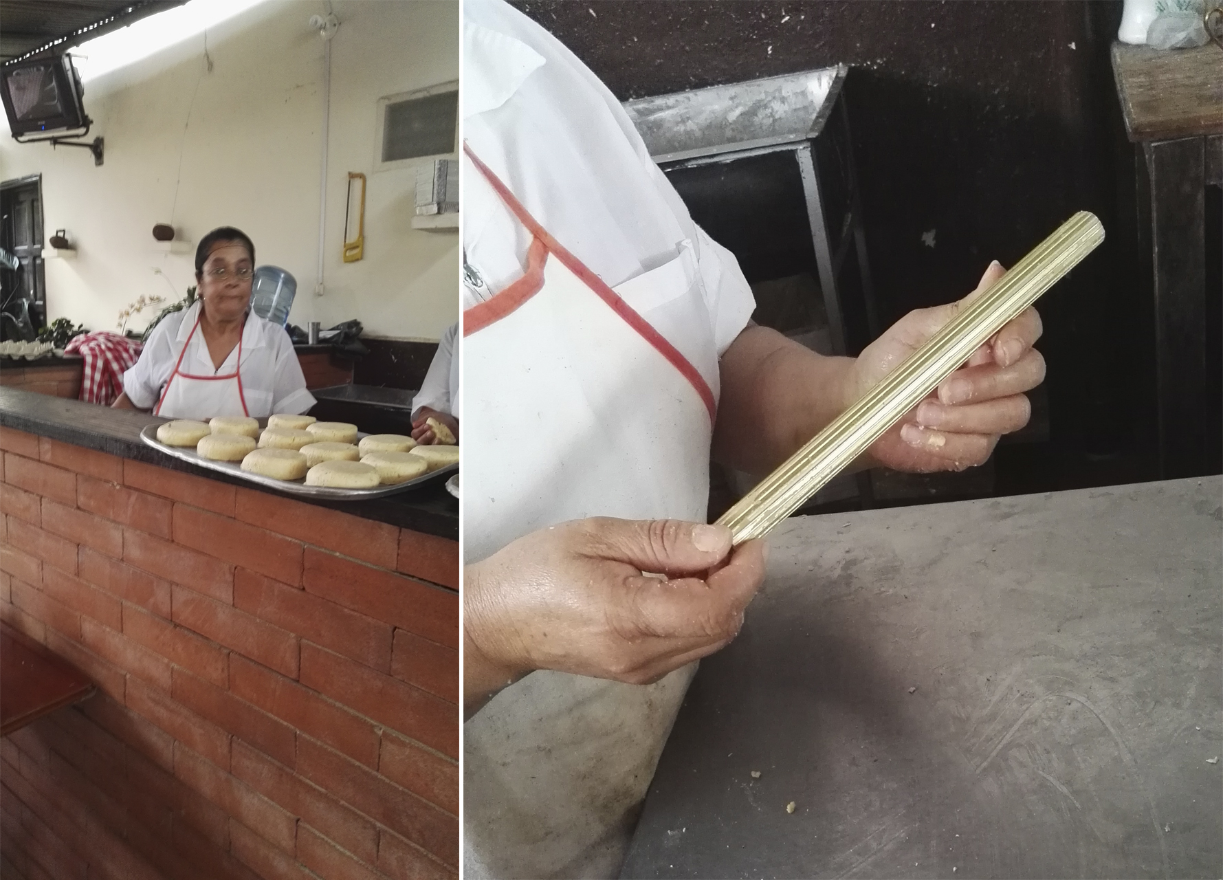 “Hay que vender calidad y así se vende cantidad, por eso es que yo he mejorado mis recetas” dijo alzando su voz en señal de orgullo mientras preparaba la harina de maíz para la siguiente receta. Me contó que antes de ser experta en pan de maíz llevaba su cuaderno de arriba para abajo, por el miedo a dañar los ingredientes que sus patrones le compraban para hacer el pan.