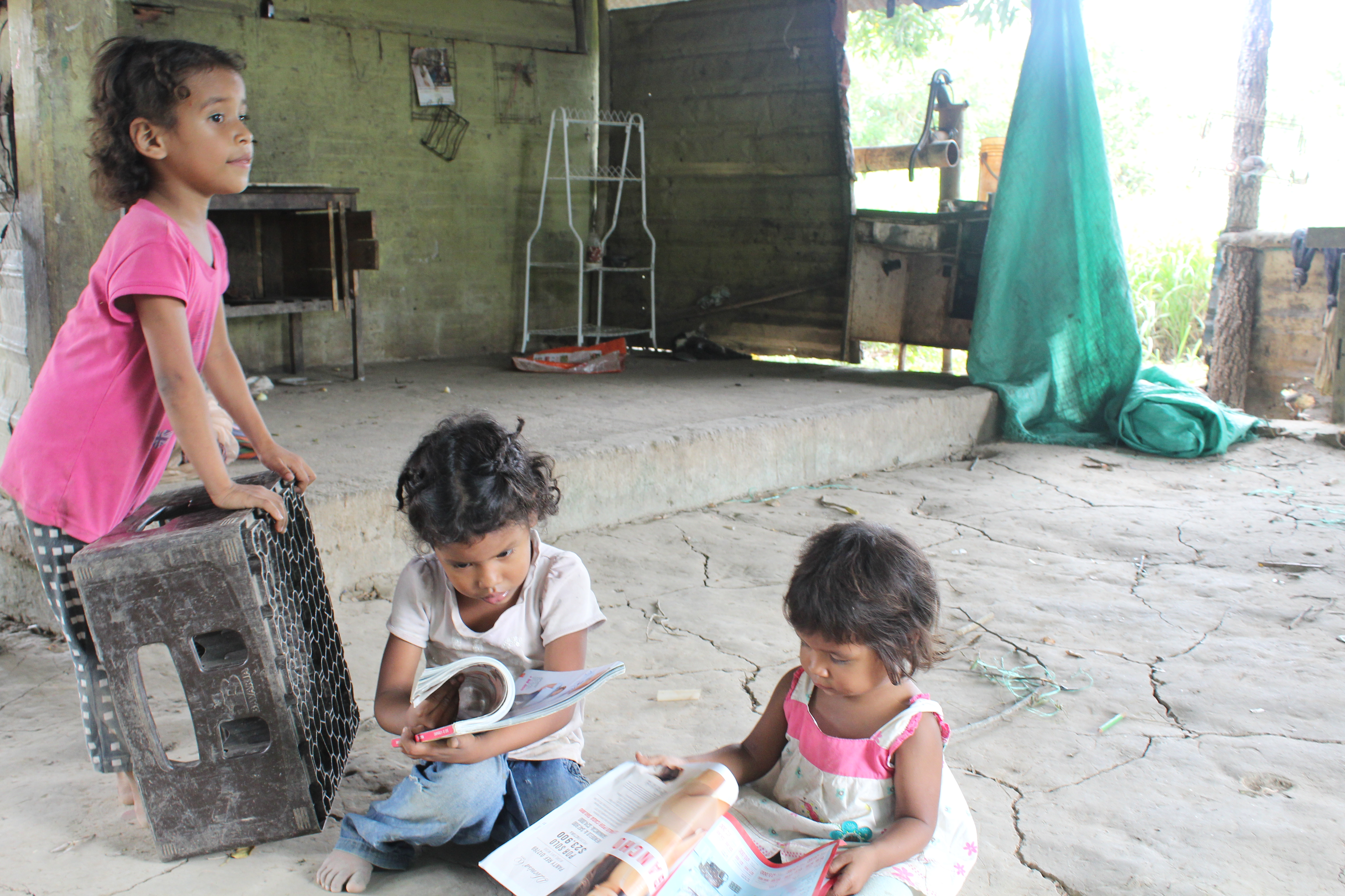 Marly se encuentra en la espera de su cuarta hija en su ranchito ubicado en el resguardo de Matecandela, el que construyó junto a Julio César a partir de elementos de reciclaje, cemento y ladrillos que han podido ir consiguiendo poco a poco, solo tienen una habitación y cuatro ‘chinchorros’. El piso es de arena, no tienen cocina, ni tampoco sala, pero lo que sí tienen es un pequeño parquecito que le construyeron a las niñas con un rodadero que encontraron en la basura un poco dañado, varios juguetes que han ido recolectando, un columpio que hicieron con madera, cuerdas y mucha imaginación, para que ellas estuvieran felices.