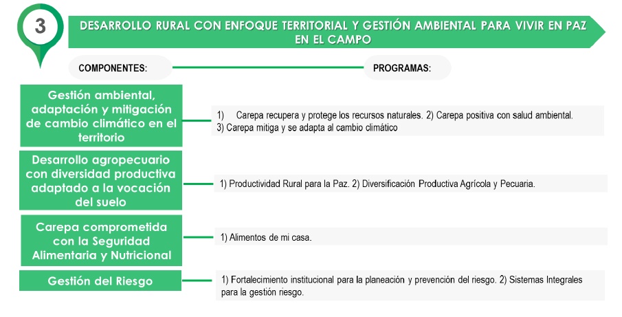 Y este es el cuadro sobre el tema ambiental del Plan de Desarrollo de Carepa, con diseño similar.