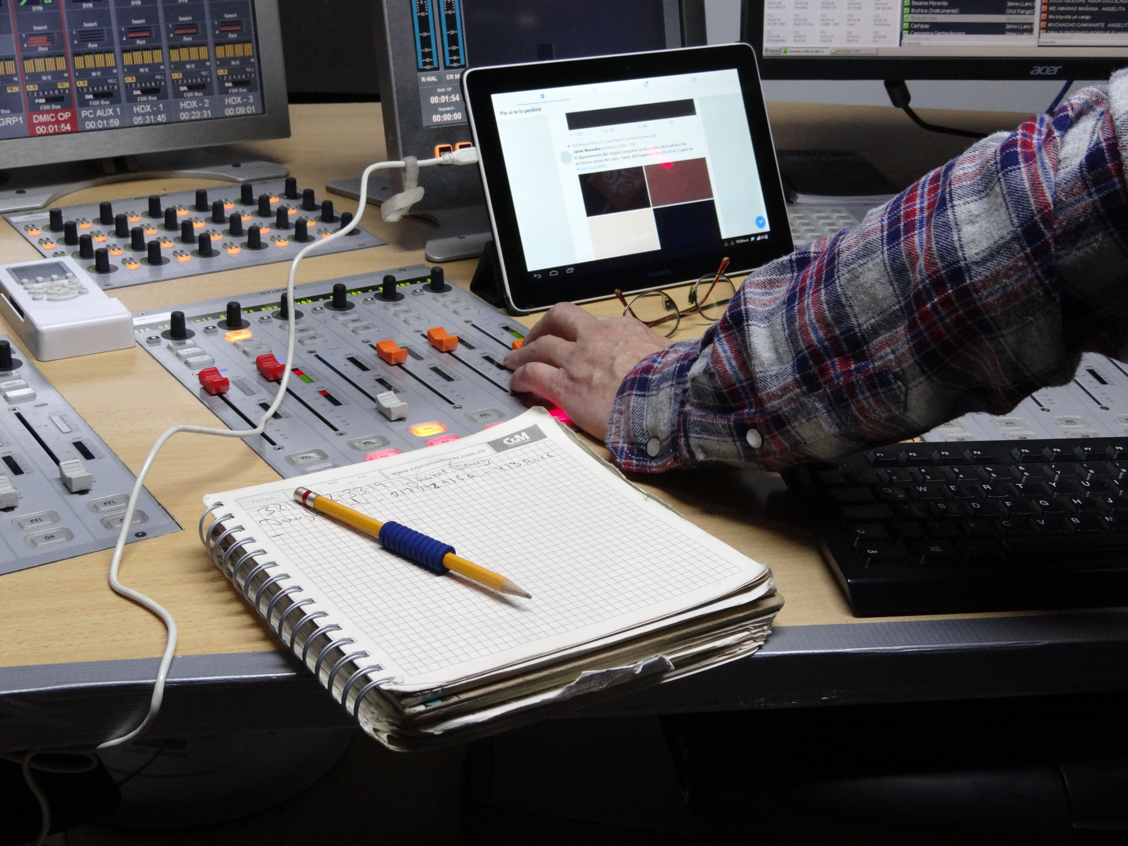 El reloj se acerca a la media noche, tiene que volver a cabina para dar el boletín de noticias. Aún quedan un par de horas en las que seguirá informando a los que, como él, trabajan en las noches o inician su jornada en la madrugada.