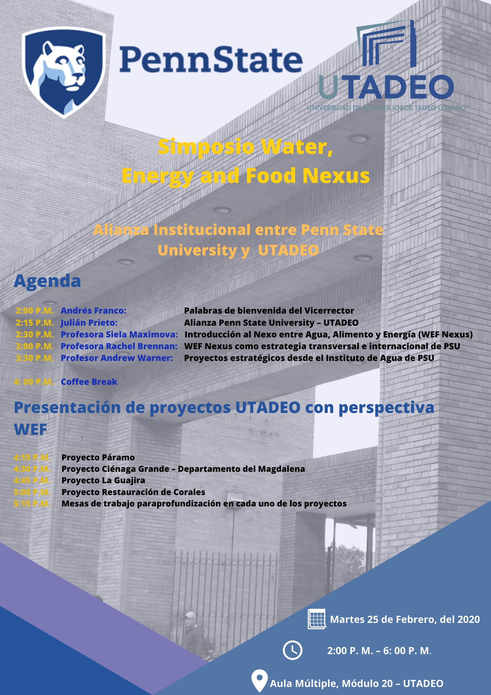 Simposio Water, Energy and Food Nexus - Alianza Institucional entre Penn State University y Utadeo