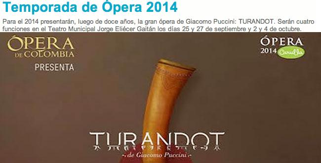 La pieza ganadora será el eje central de la campaña publicitaria que la Ópera de Colombia desarrollará en los medios de comunicación masiva: prensa, revistas, radio, televisión, impresos e internet. Dicha pauta se ejecutará entre los meses de mayo y septiembre.