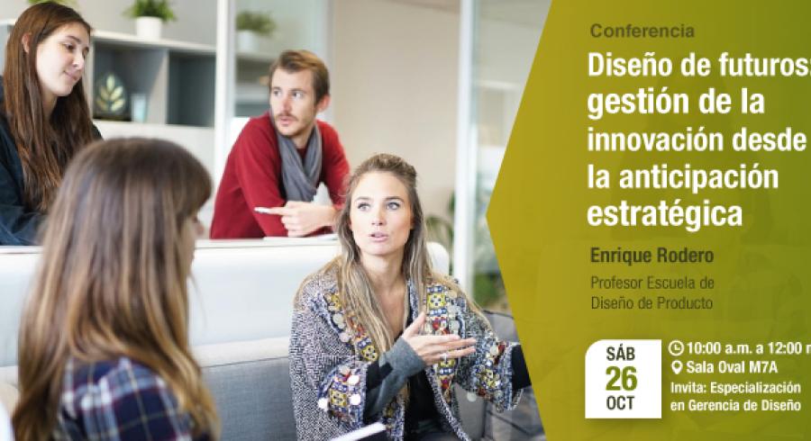 Te invitamos a conocer más sobre la Especialización en Gerencia de Diseño en la conferencia "Diseño de Futuros: gestión de la innovación desde la anticipación estratégica". La cita es el próximo sábado 26 de octubre, a las 10:00 a.m., en la Sala Oval Módulo 7A.