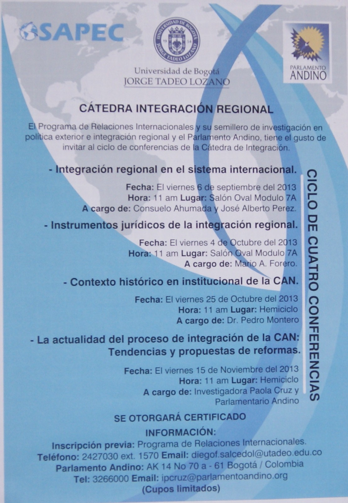 Cátedra de Integración Regional, un espacio generado desde el semillero de investigación en política exterior e integración regional del Programa de Relaciones Internacionales y el Parlamento Andino