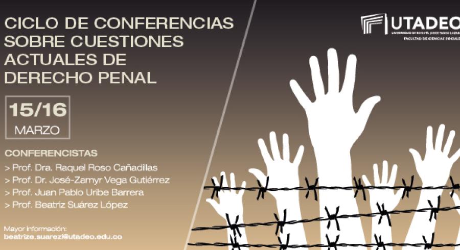 El Departamento de Ciencias Jurídicas y la Facultad de Ciencias Sociales de la Universidad de Bogotá Jorge Tadeo Lozano invitan a la comunidad académica a participar en el ciclo de conferencias sobre cuestiones actuales de Derecho Penal.