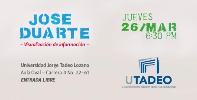José Duarte es co-fundador de Ledfish, una empresa de diseño de información, editor de handmadevisuals.com y conferencista internacional sobre visualización de información. Ahora, está explorando maneras simples de visualizar información de forma rápida y fácil y su trabajo –particularmente The handmade visualization toolkit- ha inspirado a la gente a acercarse por primera vez a este campo. Su trabajo ha sido publicado por los libros Visual Storytelling de Gestalten y Infographics: designing and visualizing data de Promopress y ha aparecido en blogs y revistas especializadas de todo el mundo como Owni, Marie Claire, Infoaesthetics, brainpickings y Co.Design entre otros. Ha sido conferencista en eventos especializados sobre visualización y Open Data como el Open Design Vienna y ha dado charlas y talleres en Colombia, Austria, Eslovaquia, Alemania, Holanda, Bélgica, México y Estados Unidos entre otros.