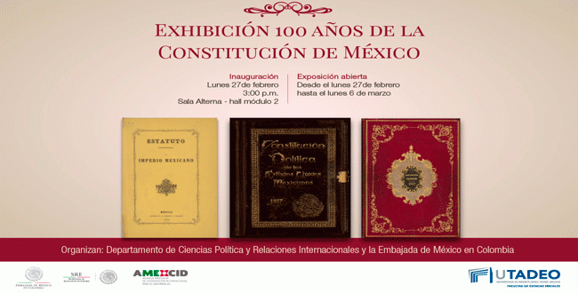 La Exhibición sobre la Constitución de México se inaugurará el lunes 27 de febrero a las 3:00 pm, en el hall del módulo dos. Este evento se realiza en el marco de los 100 años de la Constitución, la cual representa uno de los más importantes avances en materia de derechos humanos y sociales del siglo pasado.