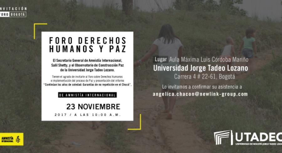 En el marco de esta visita, Amnistía está interesada en promover el diálogo sobre DDHH en Colombia, en este marco, el Foro 'Derechos Humanos y Paz' abordará la implementación del Acuerdo de Paz y se realizará el 23 de Noviembre -a un día de cumplirse el año de la segunda firma-. El objetivo es discutir y analizar retos y soluciones a la implementación del Acuerdo en el marco de los derechos humanos y el Derecho Internacional Humanitario.