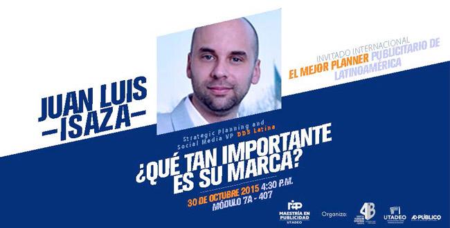 Cada año la Maestría en Publicidad de Utadeo, cuenta con un invitado internacional, con el fin de reflexionar sobre los aspectos más relevantes de la publicidad en el mundo contemporáneo, para esta ocasión se ha invitado a Juan Luis Isaza, Estrategic Planning and Social Media VP DDB Latina, quien ofrecerá su charla "Qué tan influyente es tu marca".