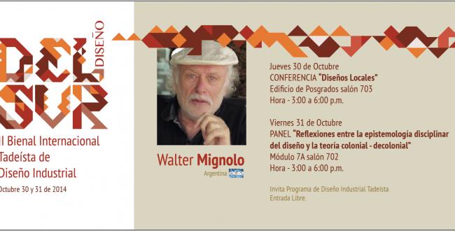 El programa de Diseño Industrial tiene el gusto de invitarlos el próximo viernes 31 de octubre al PANEL "Reflexiones entre la epistemología disciplinar del diseño y la teoría colonial-decolonial" (3:00 p.m. Módulo 7A-702) con el semiólogo y profesor de literatura Doctor Walter Mignolo.