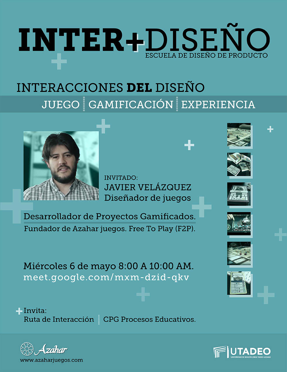 Desde el marco de la ruta de interacción y el CPG de procesos educativos, la Escuela de Diseño de Producto invita a los estudiantes y profesores interesados a la charla con Javier Velásquez, diseñador de juegos, especialista en gamificación y sistemas lúdicos, y fundador de Azahar Juegos.