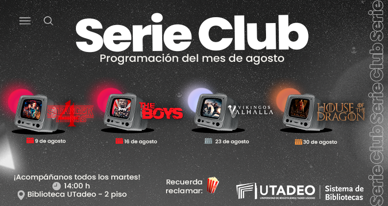 PelículaSerie Club: La Casa del DragónFecha del evento: Martes, Agosto 30, 2022 - 14:00Fecha fin del evento: Martes, Agosto 30, 2022 - 16:00 Compartir en Serie ClubTe invitamos a disfrutar la serie “La Casa del Dragón" Fecha: Martes, 30 de agostoHora: 2:00 p.m.Lugar: Biblioteca UTadeo, Segundo Piso.Entrada libreSinopsis: La historia de la familia Targaryen, 300 años antes de los eventos que tuvieron lugar en "Game of Thrones".Trailer: