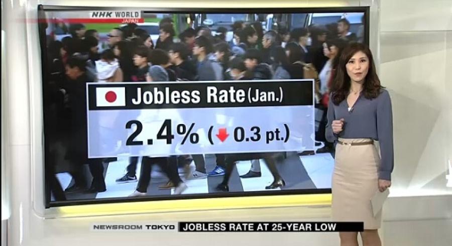 La tasa de desempleo en Japón cae a su menor nivel en 25 años