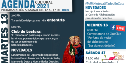 Julio 09 / 2021Martes 13 de julioPrograma radial EnterArte: Emisora virtual Óyeme. Hora: 2:00 p.m.Club de lectura: "El Romancero".