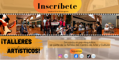 Fomentamos el acceso y desarrollo de las expresiones artísticas y culturales con una amplia oferta de actividades. Con esto contribuimos a la formación integral y al enriquecimiento del tiempo libre de la comunidad tadeísta.