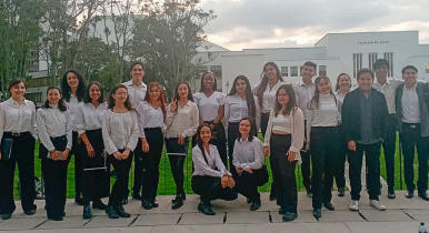 En un resonante éxito artístico, el coro brilló en la reinauguración del Auditorio León de Greiff de la Universidad Nacional, bajo la dirección de Camilo Abello.