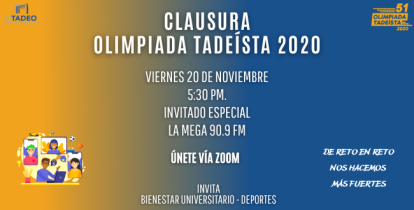 Para todos los deportistas que nos acompañaron: mil gracias por participar en la Olimpiada Tadeísta virtual No. 51. Felicitaciones a nuestros ganadores.