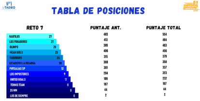 Así va la tabla de posiciones de la olimpiada tadeísta reto #7.