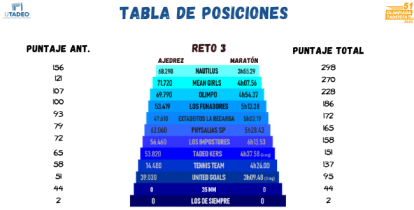 Así va la tabla de posiciones en los retos de la Olimpiada Tadeísta No. 51.