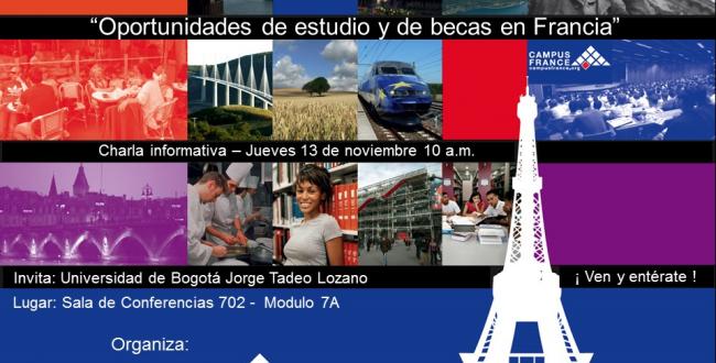 El próximo Jueves 13 de Noviembre a las 10:00 a.m. se ofrece una charla informativa para conocer las oportunidades de estudio y becas en Francia.