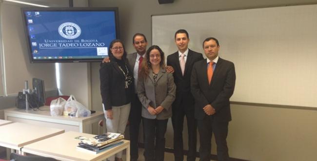 La última semana de marzo visitaron al programa de comercio internacional el Dr Fernando Augusto Medina Gutiérrez, Director de Impuestos de Bogotá de la Secretaría Distrital de Hacienda y el Dr Manolo Montoya Merino Subdirector de Financiamiento con otras Entidades, quienes tuvieron un conversatorio con los estudiantes, sobre los temas de La Administración Tributaria Local y el Manejo de la deuda pública en el municipio.