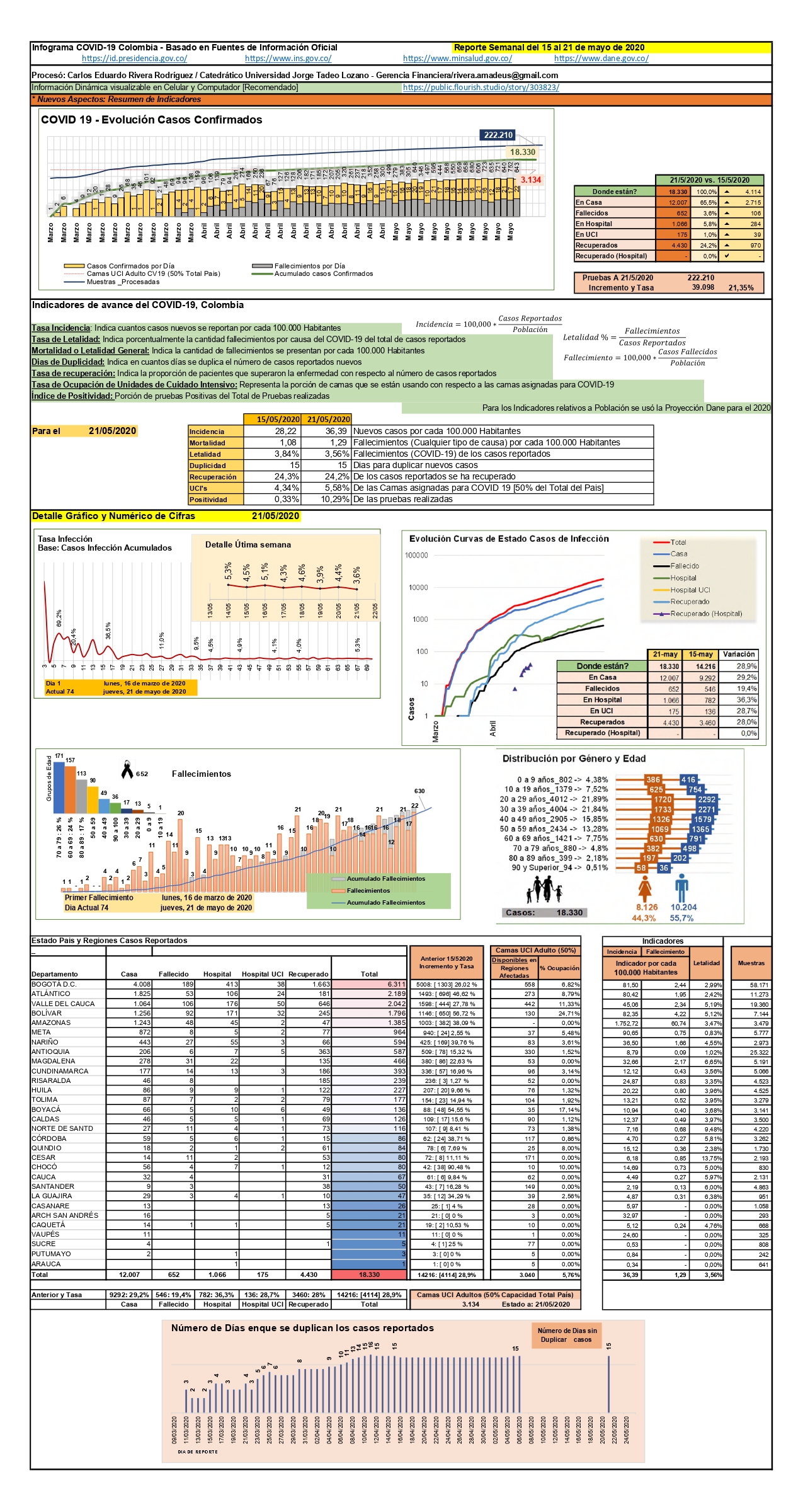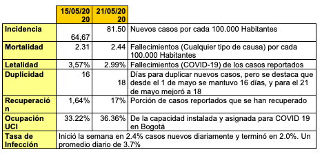 A continuación, se presenta el análisis de la evolución de la pandemia en nuestro país y en Bogotá en la semana comprendida entre el 15 y el 21 de mayo.