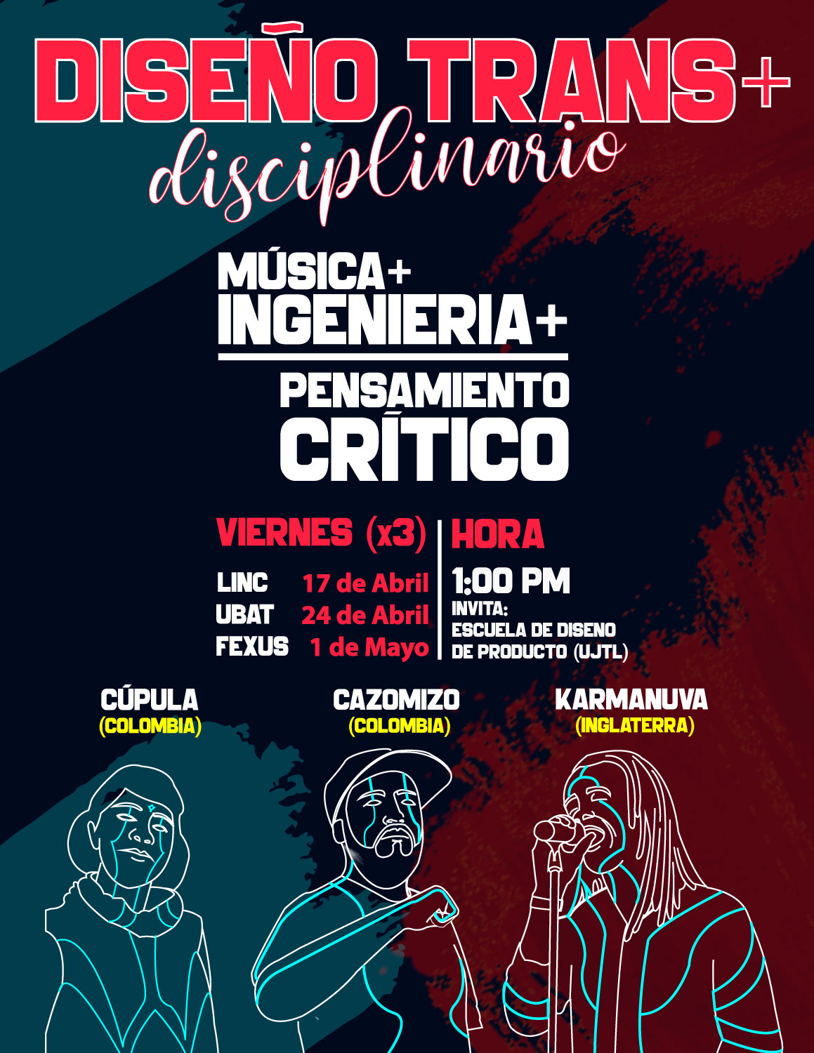 A partir de la participación de estos artistas se armaron tres grupos de trabajo transdisciplinario para explorar el rol que tiene el arte y el diseño en la transformación social, más allá del entretenimiento. Con la pregunta resuelta, se organizó un concierto en el que los estudiantes diseñaron la puesta en escena que involucró animatrónica (robots que controlaban las luces), además del trabajo de los diseñadores y los artistas. De esta presentación, el profesor Chaparro recuerda que se diseñó una indumentaria que tenía luces rítmicas, es decir que "si el artista tocaba el saxofón su traje iba a iluminar al ritmo de la música".