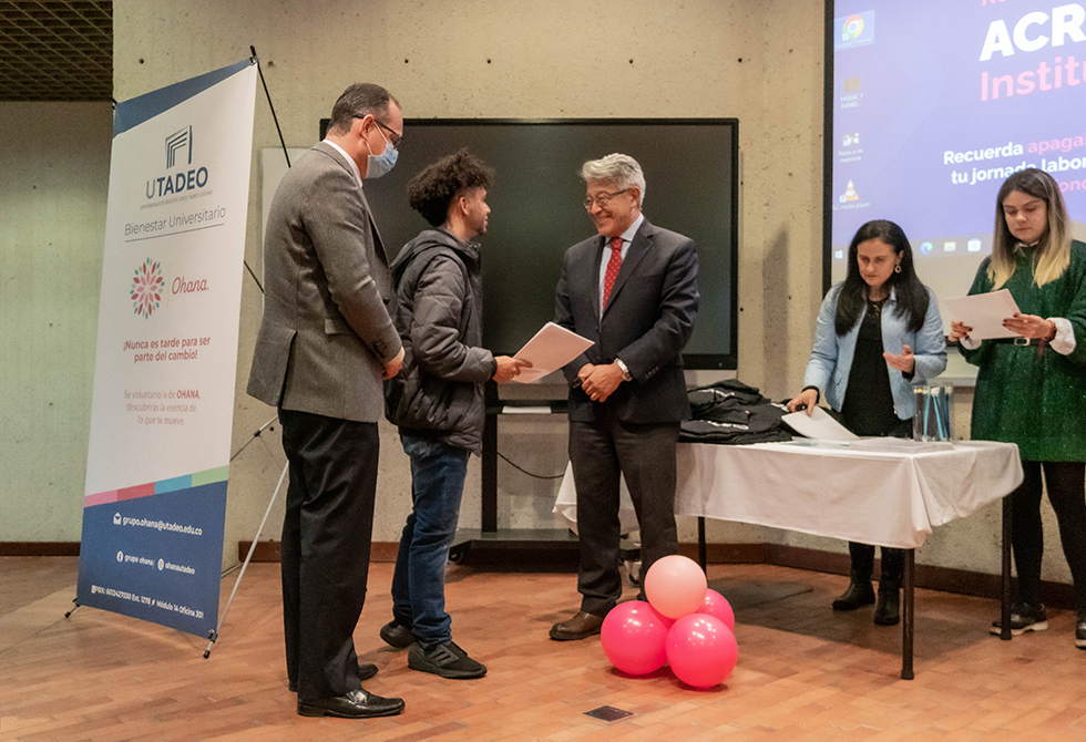 En su intervención, el rector de la Universidad resaltó la importancia de ayudar a las personas de forma voluntaria. "Hoy ustedes ayudan a sus compañeros de la Universidad, pero después de esta experiencia lo harán con muchas más personas en otro tipo de organizaciones. Es algo que seguramente lo acompañará el resto de su vida. Les entregamos un reconocimiento a su trabajo, es satisfactortio y motivo de orgullo para la Universidad tenerlos. Gracias por lo que hacen por sus compañeros y el trabajo social y académico que desempeñan".