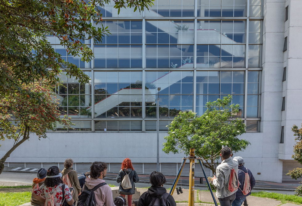 “Intervenir los espacios del centro de la ciudad y llevar arte fuera de los teatros convencionales es el objetivo de esta muestra artística que nombramos Espectros, la cual le permite a las personas entender otras realidades mientras redescubren los entornos en los que se mueven”, señala Valentina Monsalve estudiante de artes escénicas en la Universidad Javeriana, quien partició en la intervención artística que se realizó en el edificio de posgrados de Utadeo, y que se visualizó desde el parque de la carrera 3 con calle 23.