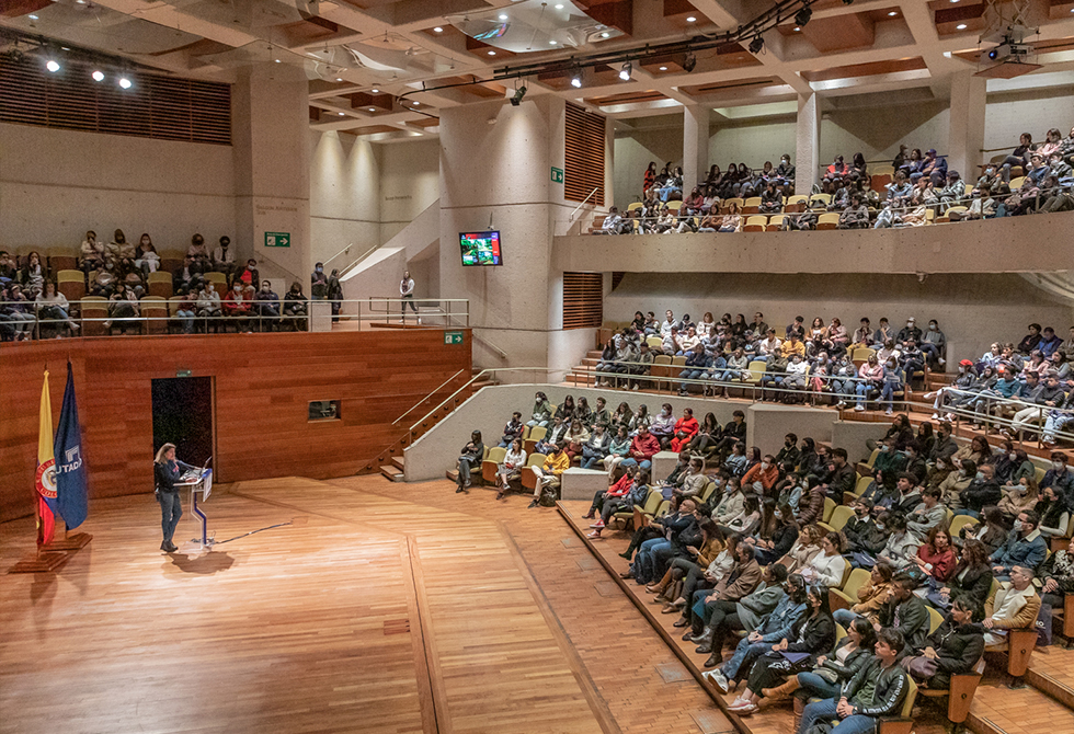En su más reciente jornada contó con la participación de más de 400 personas quienes en el Auditorio Fabio Lozano tuvieron de primera mano información pertinente y el acercamiento con docentes y administrativos de Utadeo. Elizabeth Torres Tenorio, Directora de Promoción, Admisión y Matrícula, dio la bienvenida a todos con una palabras que los llevó a mirar a futuro. “Este auditorio que hoy los recibe será en cinco años el lugar en el que reciban su título como profesionales. Una aventura que empieza desde hoy y que además les da la responsabilidad y la posibilidad de construir un mejor futuro”.