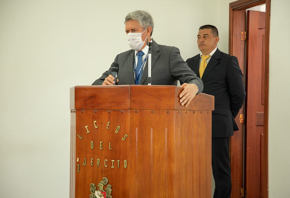 En representación de todos los docentes, el profesor Juan Carlos Vivas Gutiérrez, desde los Liceos del Ejército Pichincha de Cali, se dirigió al auditorio en Bogotá y a sus colegas y compañeros conectados virtualmente desde los diferentes Liceos de Colombia, y reflexionó sobre los desafíos que representó la virtualidad para la educación, señalando que debido al momento de coyuntura mundial que vivimos “Nos hizo pensar que no éramos capaces de comenzar este nuevo proceso, pues fueron esos momentos de angustia, temor y desazón los que motivaron a cada uno de nosotros a que implementara nuevas estrategias que nos permitiera continuar educando desde la cercanía y el afecto, gracias a todos los que hicieron posible este diplomado, pues los conocimientos y estrategias desarrolladas, ayudaran a mejorar la enseñanza y por ende el aprendizaje de nuestros estudiantes en los Liceos del Ejército”; agradeció a la Universidad y a los profesores que los instruyeron “por su interés y dedicación”, resaltando el programa estructurado por Utadeo “La presentación de unidades de trabajo de alta calidad, unidades actualizadas y una amplia referencia bibliográfica, docentes de gran experiencia profesional y vocación que dejaron en nosotros, en nuestro papel de estudiantes del diplomado, la tarea de continuar y profundizar en las temáticas desarrolladas y ponerlas en práctica en el aula, con el fin de robustecer nuestro quehacer pedagógico”.