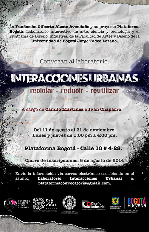 El taller en convenio con la Fundación Gilberto Alzate, empezó este semestre bajo el nombre de 'Laboratorio Interactivo de Interacciones Urbanas'. La idea de esta iniciativa es desarrollar proyectos con impacto social y ambiental a nivel urbano, que solucionen problemáticas diversas desde una perspectiva multidisciplinar. La Tadeo escogió a 10 estudiantes de Diseño y la Fundación Gilberto Alzate a 15 profesionales por convocatoria abierta y pública, quienes por su portafolio y méritos reciben el estímulo de desarrollar un proyecto artístico y de diseño apoyado por las dos instituciones.