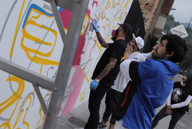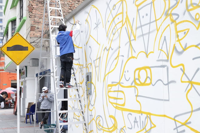 “Tenemos el apoyo de una escritora y emprendedora muy interesante que se llama Laura Arenas K, su propósito es mejorar los hábitos de las personas para que desarrollen una mente feliz. Entonces, este mural es una conceptualización artística que hizo Ceroker sobre la felicidad y la reinvención; de hecho, la gama que colores que tiene es la misma del libro Ser feliz un día a la vez, escrito por Laura”, asegura Santiago Aguilar, uno de los líderes del movimiento.