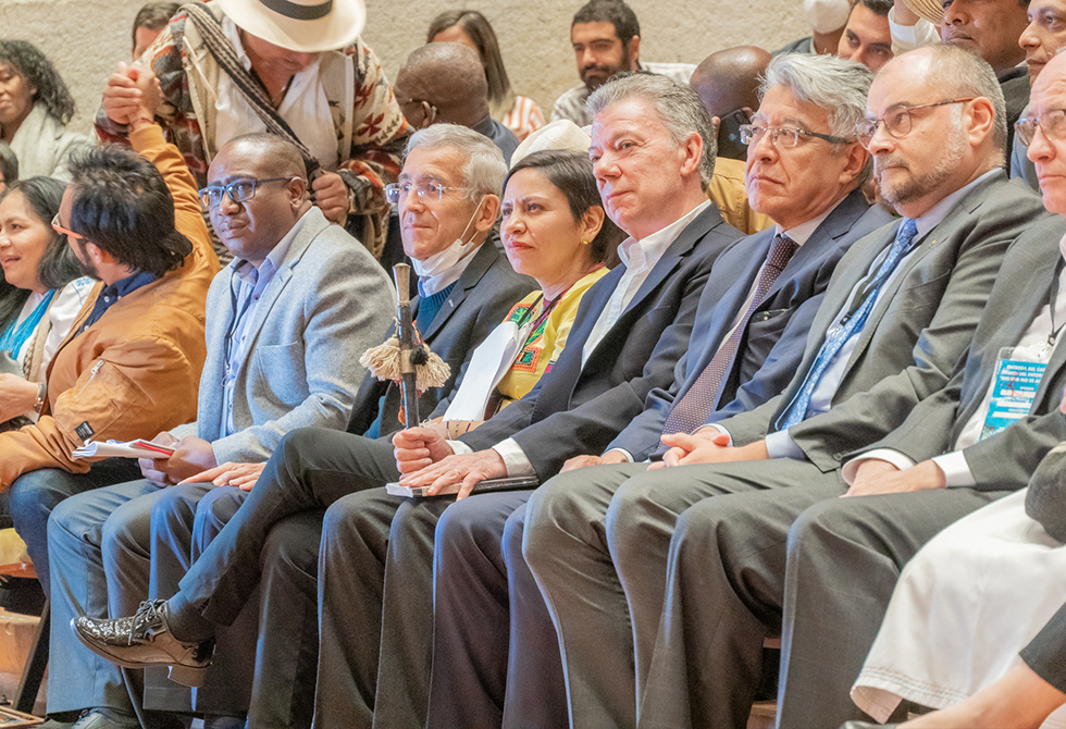 Al evento asistió el expresidente y premio Nobel de la Paz, Juan Manuel Santos Calderón, el rector de Utadeo, Carlos Sánchez Gaitán, el padre Francisco de Roux, presidente de la Comisión de la Verdad, representantes de la Organización de las Naciones Unidas y de las comunidades indígenas, negras y Rom.
