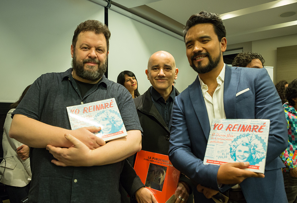 - Felipe Cesar Londoño (Decano de la Facultad de Artes de Utadeo), Cecilia María Vélez (Rectora Utadeo) y Cristian Schrader (Director del programa de Publicidad de Utadeo)