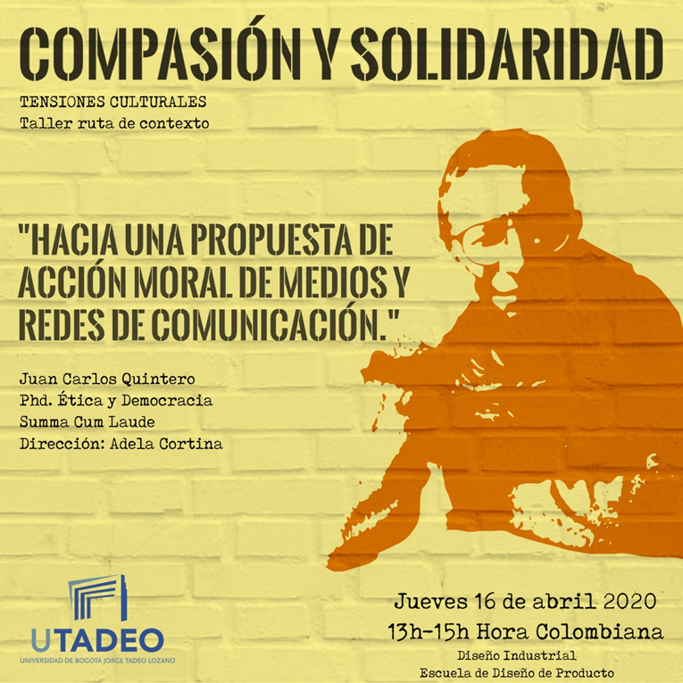 En este sentido, hemos invitado al doctor en Ética y Democracia, Juan Carlos Quintero, para dialogar en torno a los resultados de su tesis doctoral "Compasión y Solidaridad. Hacia una propuesta de acción moral de medios y redes de comunicación", dirigida por la filósofa española Adela Cortina, autora de diversos libros que gravitan en torno a la pregunta por la ética pública o una ética común.