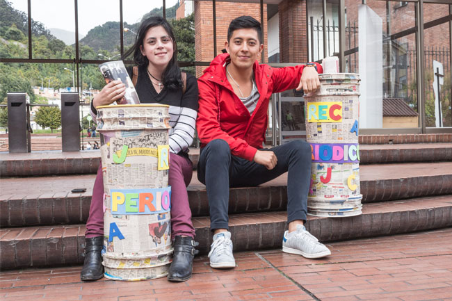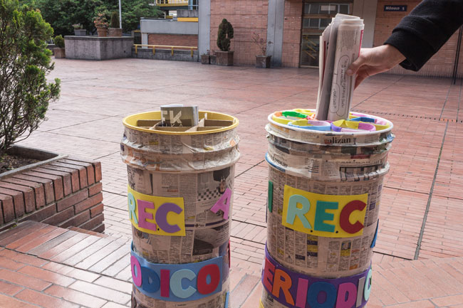 Ante esta problemática, un grupo de estudiantes de este programa académico liderado por Juan Sebastián, creó los puntos REC: Recicla, Entrega y Comparte, una serie de canecas diseñadas para depositar periódicos y revistas de uso común.