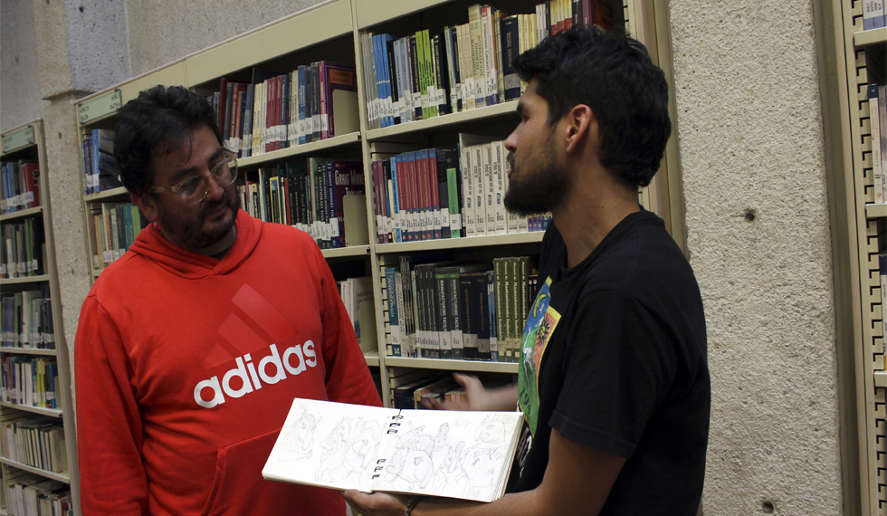 Julian Velásquez, coordinador del Semillero de ilustración, y Andrés Novoa, coordinador del TAD.