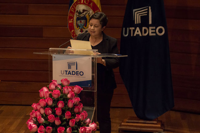 Las emociones estaban a flor de piel y las promesas hechas estaban por cumplirse. Olga Illera, exdirectora del Departamento de Ciencia Política y Relaciones Internacionales de Utadeo, asistió a la ceremonia para acompañar a esta cohorte de internacionalistas que considera como sus hijos, pues siguió y vivió muy de cerca su proceso académico: “Es una emoción enorme ver el fruto del trabajo de las familias, pero también de un equipo de profesores y administrativos que han estado acompañándolos, sufriendo, aconsejándolos y guiándolos, compartiendo espacios de pensar el país y el mundo”, señaló en medio de lagrimas de alegría.