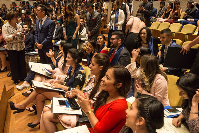 La ceremonia de grados siempre será la excusa perfecta para sentir orgullo de nuestros familiares y amigos. Los ojos de los padres de familia que se aguan tras oír en el escenario el nombre de sus hijos, así como el ya tradicional acompañamiento de algunos profesores del programa de Publicidad a quienes eran sus 'pupilos' y ahora se convierten en sus colegas, hace parte de este marco que engalana el Auditorio.
