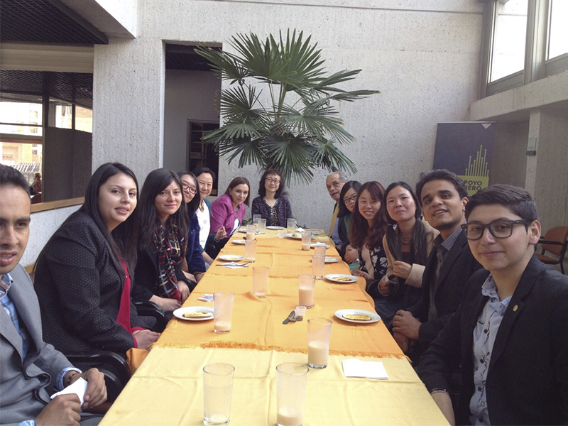 La bienvenida fue por todo lo alto. Con un delicioso ajiaco la recibimos en la Universidad Jorge Tadeo Lozano, allí, en el edificio de posgrados, departió junto con la directora del Programa de Relaciones Internacionales, Olga Illera, el director del Instituto el Dr. Enrique Posada y el personal del Instituto Confucio U.Tadeo.