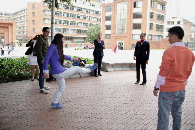 El instrumento llamó la atención del Doctor Melo, la decana del programa de Comunicación Social- Periodismo, Vera Schütz Smith, la decana de Relaciones Internacionales, Olga Lucía Illera, quienes no aguantaron la curiosidad y en compañía de nuestro director, Enrique Posada, le hicieron preguntas a la intérprete.