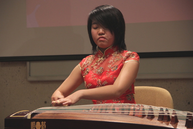 El público quedó en manos de Zhang Di, artista de la ciudad de Tianjin, quien los deleitó con cuatro canciones interpretadas en el instrumento más popular de la dinastía Qin, el Gǔzhēng (古箏).