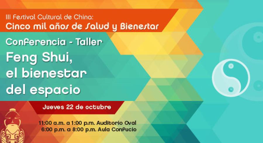 ¿Cómo utilizar el Feng shui en nuestras vidas? ¿Qué beneficio tiene esto para nosotros? Descubra ésta práctica en el III Festival Cultural de China con la conferencia-taller “Feng Shui, el bienestar del espacio” el jueves 22 de octubre en dos horarios: en la mañana de 11:00 a.m. a 1:00 p.m. en el auditorio OVAL y en la tarde de 6:00 a 8:00p.m. en la Aula Máxima del Instituto Confucio