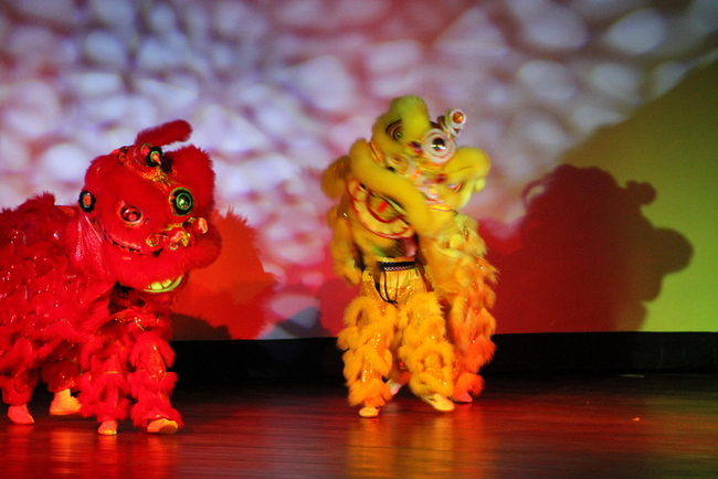 Tras los actos protocolarios y de dos menciones especiales tanto felicitando a nuestra universidad cogestora, la Universidad de Estudios Extranjeros de Tianjin (TFSU) en el 50 aniversario, así como a la directora china del I.C Uniandes, ZhangHuijing por haber sido seleccionada como la mejor profesora de chino dentro de una votación web promovida por la sede central Hanban, el espectáculo empezó con unos leones danzantes dentro del público, que con graciosos movimientos llegaron al escenario para dar paso a los presentadores en medio de aplausos.
