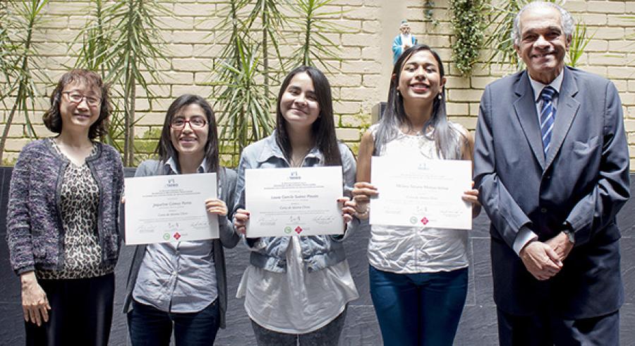 El pasado 25 agosto, de manos del Dr. Enrique Posada y Li Siqing, directores del Instituto Confucio Utadeo, estas tres chicas recibieron los diplomas que certifican que alcanzaron el Nivel 3 - Intermedio de idioma chino, luego de aprobar once cursos.