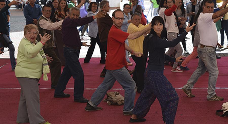 Con su pupilo colombiano, Arturo Clavijo, la audiencia aprendió al menos 20 movimientos de una rutina que combina la concentración y la fuerza de quien lo practica. “En el Taiji, si ustedes no terminan cansados es que lo hicieron mal” dijo Clavijo. Pero ¿cómo no terminar cansados si en algunos movimientos te sostiene una sola pierna?