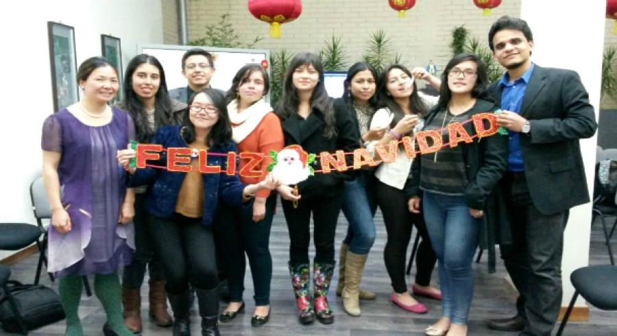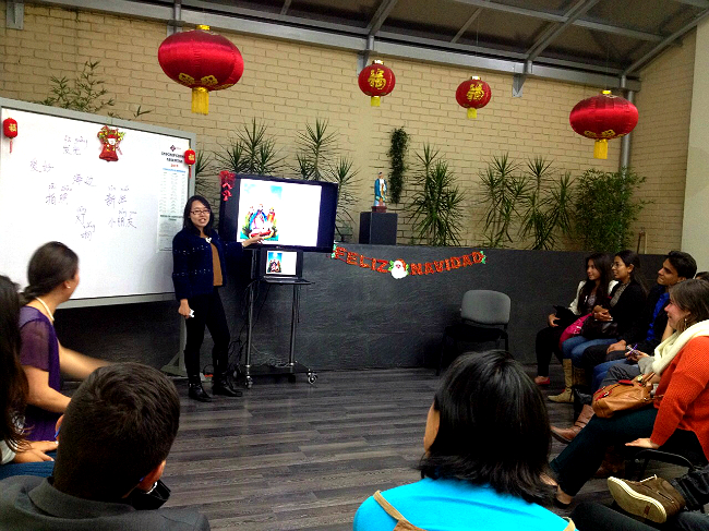 El 1 de diciembre fue el último Club de Conversación del año. La profesora Bai Tongyan, encargada de esta sesión, dio la bienvenida a la navidad con la frase ¡Zhù nǐ shèngdàn kuàilè! (¡祝 你 圣诞 快乐!) -Feliz navidad-. Nuestros participantes aprendieron las palabras necesarias para escribirle una carta a Shèngdàn lǎorén (圣诞 老人)- Papá Noel- pidiendo muchos lǐwù (礼物)- regalos-, pero que sería de Club sin un concurso. Con el vocabulario aprendido, dos grupos se enfrentaron en un concurso de adivinanzas, cada participante describió una palabra y un integrante del otro grupo la adivinaba, finalmente fue un empate.
